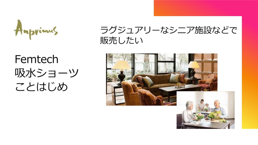 この商品は60代のシニアに利用して頂きたいんですが、ラグジュアリーなシニアの施設でも売ってみたいと考えています。ただ、これに関してはどういう風にしたらいいのかは全く分かりません。