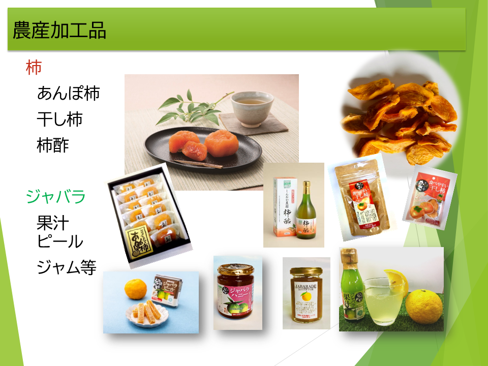- 個人農家で売り先がないジャバラを農園で引き取り、加工品へ