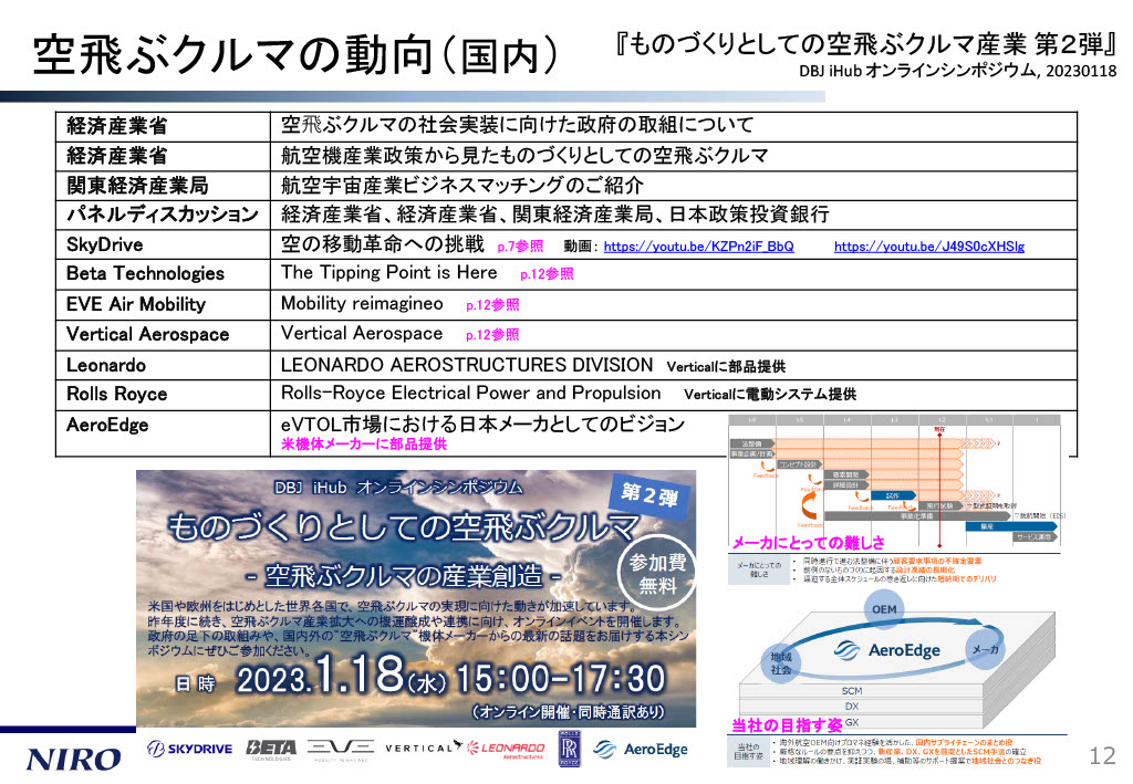 こうした技術支援を含め、日本の中小企業も空飛ぶクルマのサプライチェーンに参入し始めています。